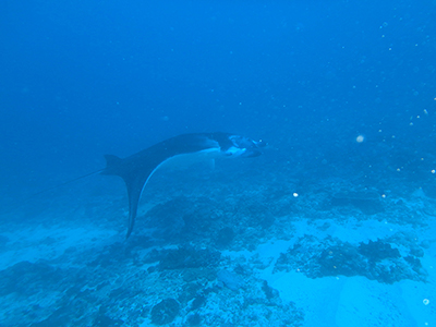 1本目 マンタポイント 波中 うねり弱 水温25℃ 透明度8m(ノーマルマンタ5枚+ブラックマンタ1枚)