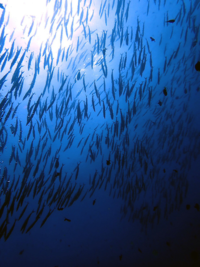 3本目 クリスタルベイ 波小 流れ弱 水温24℃ 透明度15m(タイワンカマスの群れ)