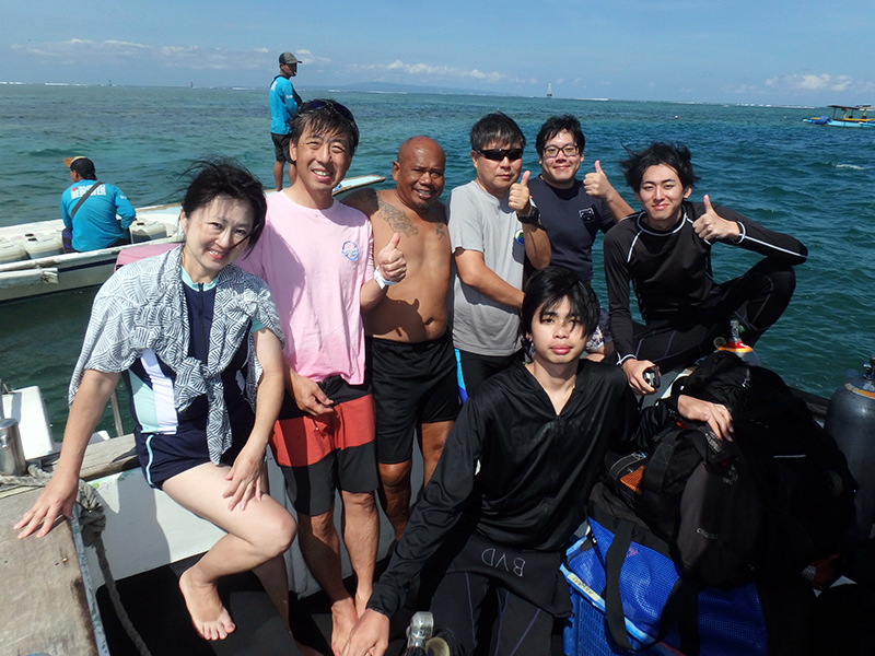 今年6月にバリビューでアドバンスを取得されたSさんと、お友達のTさん&Dさん、マレーシアからお越しのTさんご夫婦、東京都からお越しで3日間のダイビングに参加のMさんで、ヌサ・ペニダ南部と南西部エリアへ😃