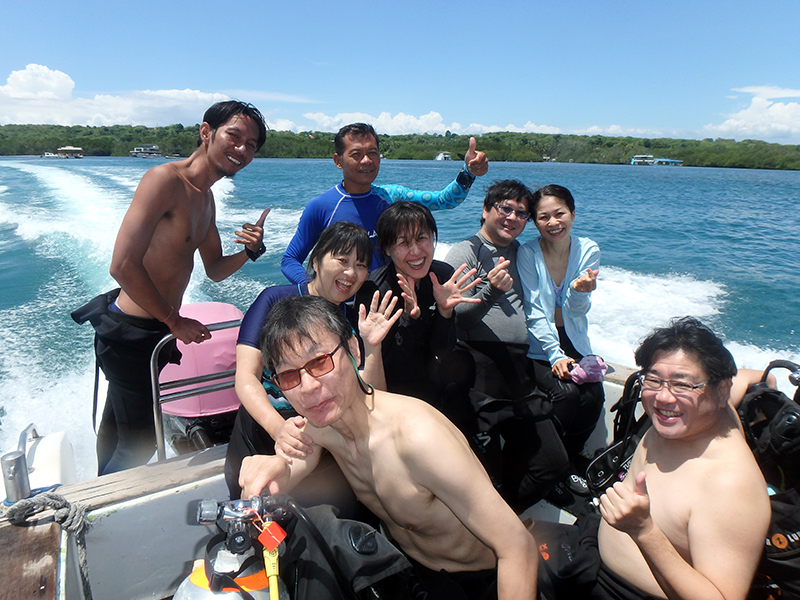 本日は大阪府からお越しで2日間のダイビングに参加のKさん&Hさん😃、神奈川県からお越しのCさん&Mさん&Mさんご夫婦😀の皆で、Pinky SUBARU号に乗ってヌサペニダへ行ってきました🚤