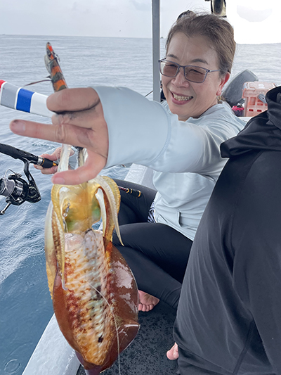 本日はバリ島在住の友人からのご紹介でお越しのMさん親子がイカ釣りに初挑戦😁