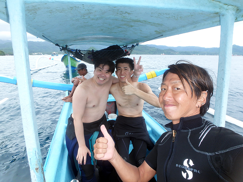 とても陽気なお客様で、陸でも水中でも楽しんでいて、水中でコカ・コーラを飲んだり、男同士でハートマークを作ったりしてたのを見て、吹いてしまいましたョ🤣