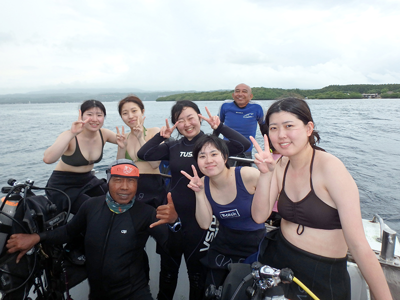 お1人のお客様だけライセンスを持っていて、他4人はワクワク&ドキドキの初ダイビング😃